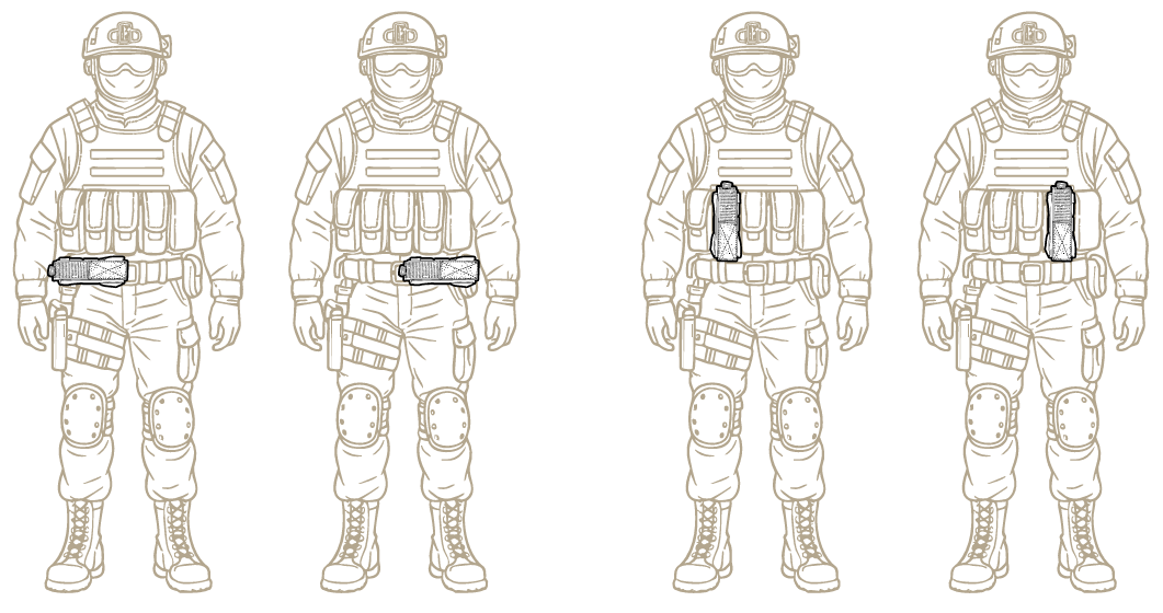 The quick-release side flap system, combined with a fully opening top flap, ensures instant access to the tourniquet. The tourniquet can be positioned in any direction using a C-shaped retainer, depending on user preference.