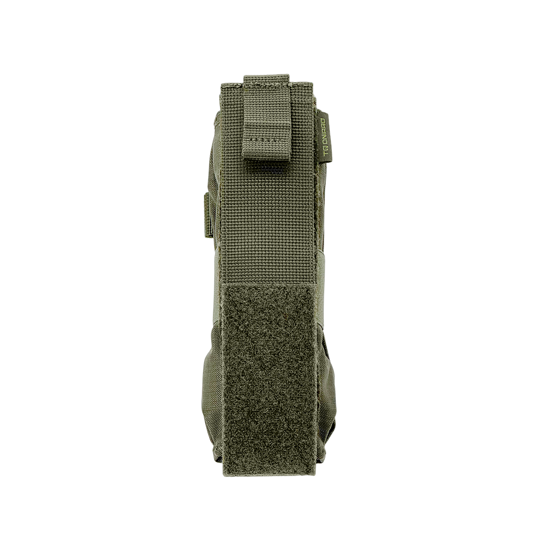 The pouch is equipped with a universal MOLLE mounting system for secure attachment to the gear of military personnel, law enforcement officers, or civilians.