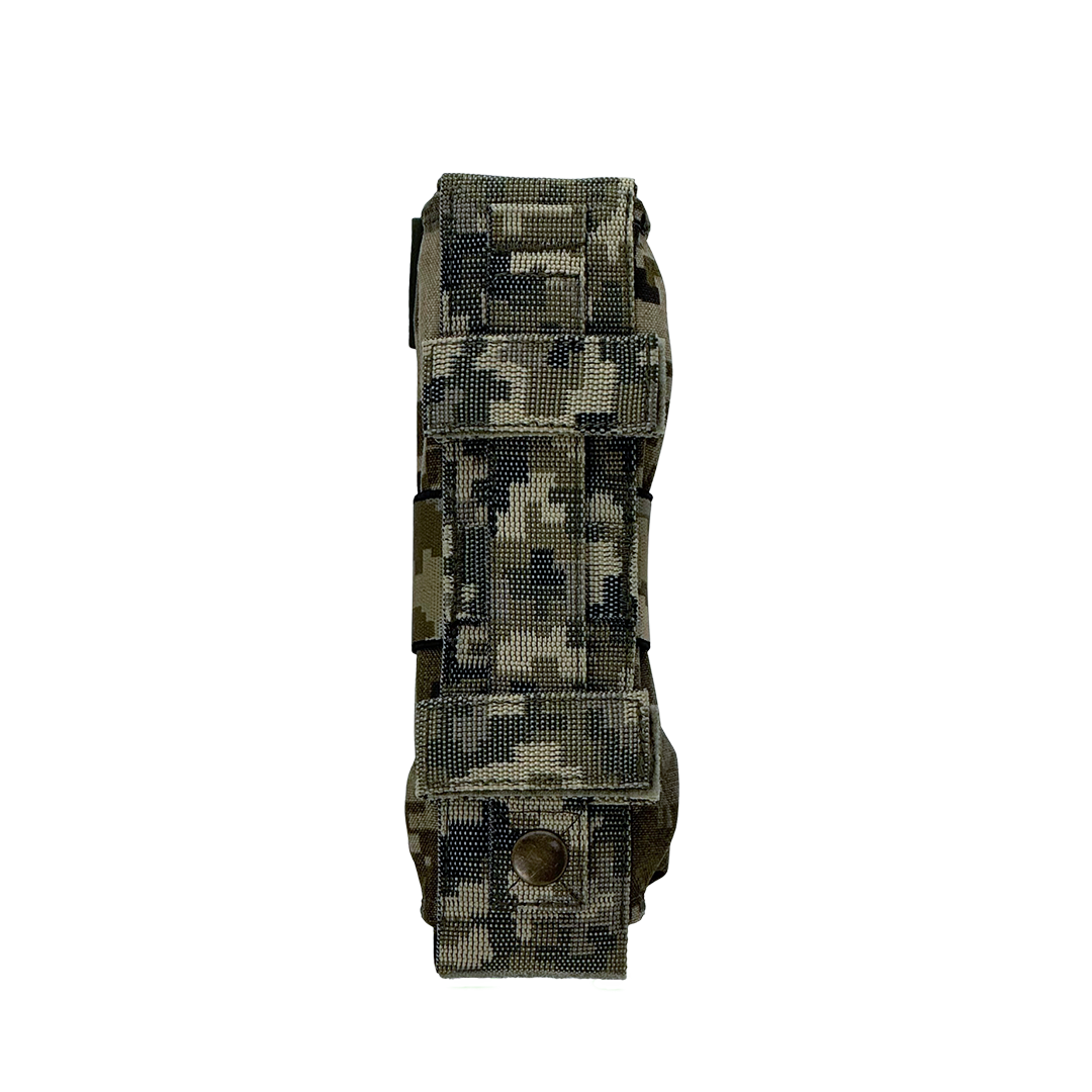 The pouch is equipped with a universal MOLLE mounting system for secure attachment to the gear of military personnel, law enforcement officers, or civilians.