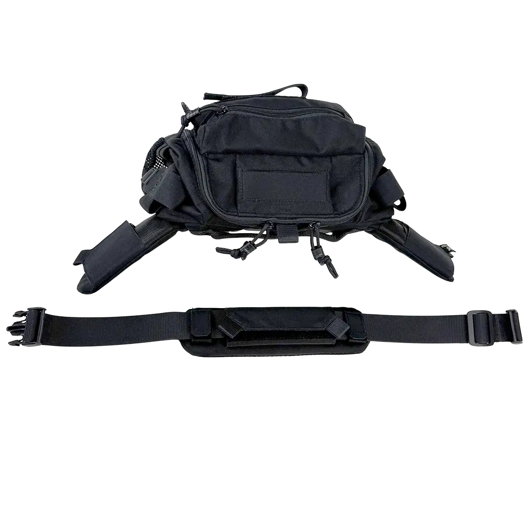 - Пасок для перенесення сумки регулюється по довжині та від’єднується за допомогою швидкоскиду у вигляді фастексів з обох боків. Фастекси закриті захисними елементами.