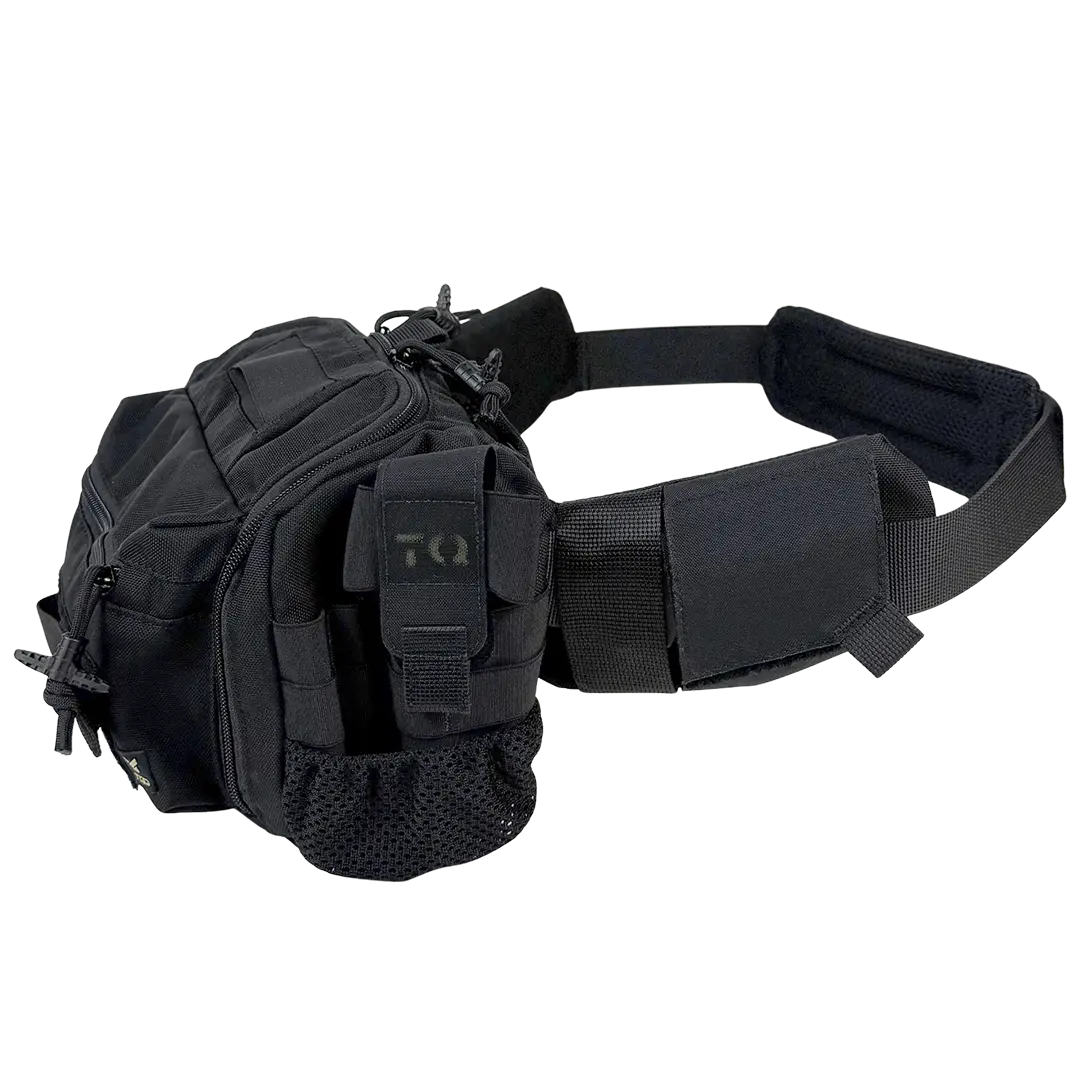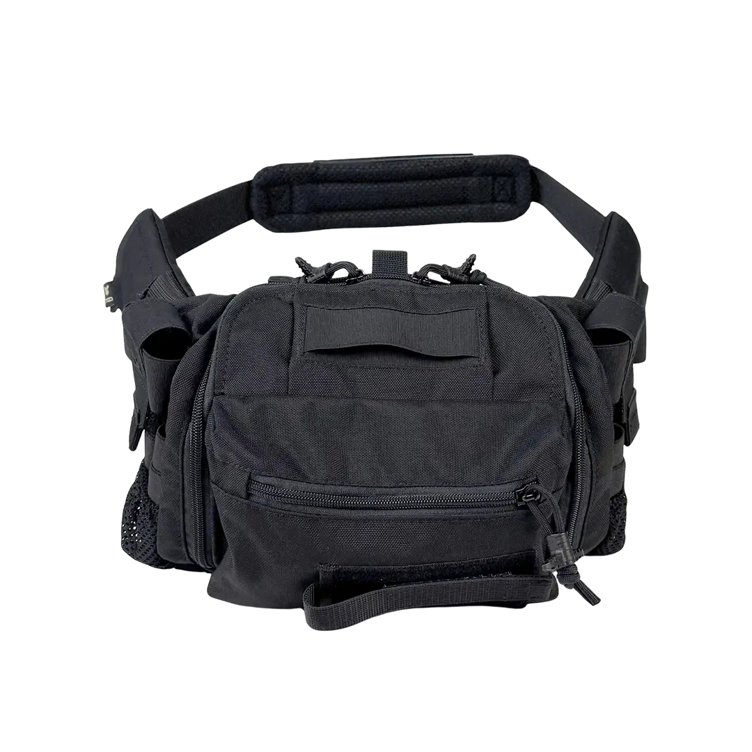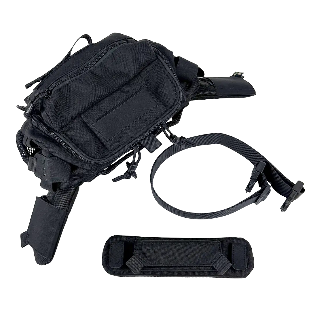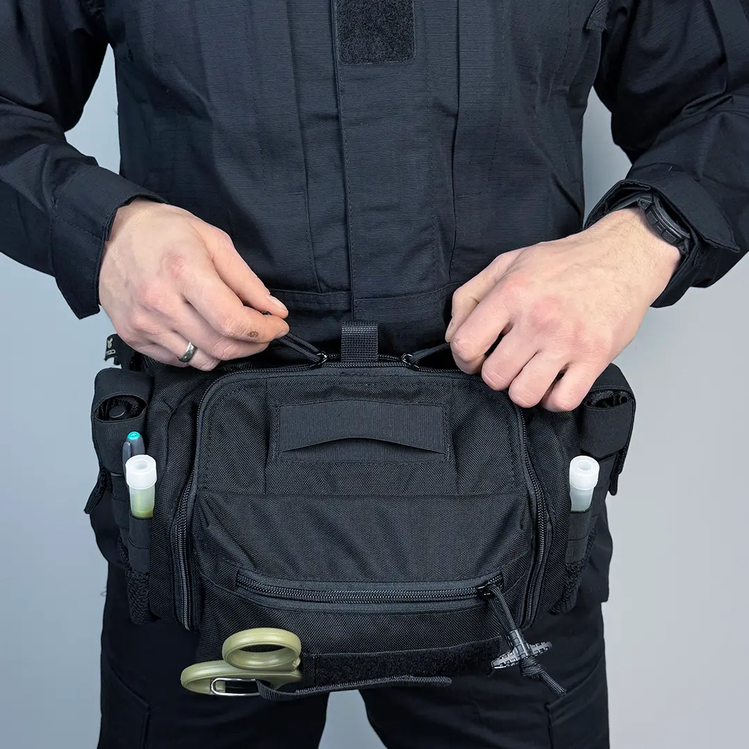 - Передня частина сумки у вигляді повністю відкривного клапану, має простору кишеню на застібці, відділення для тактичних ножиць з можливістю їх фіксації, еластичну кишеню для ретрактора, відділ для оглядових рукавичок з можливістю швидкого доступу та велкро-панель для ідентифікаційних патчів.