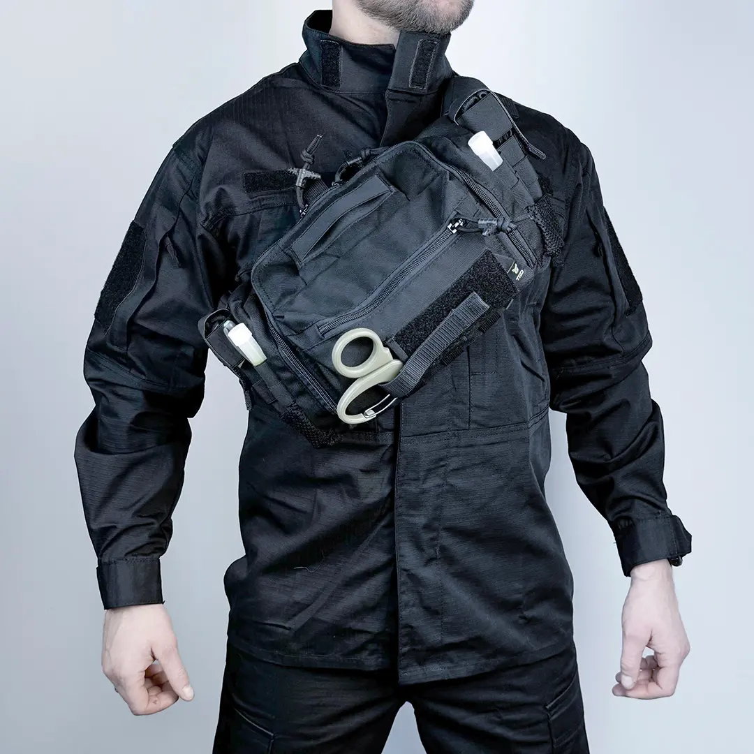 Сумка медика гібридна, модель РМ33 Black — компактний та захищений органайзер, призначений для розміщення комбінованого набору надання першої догоспітальної допомоги декільком постраждалим згідно алгоритму MARCH та засобів проведення екстреної інфузійної терапії. Розроблено для військових, цивільних медиків та рятувальників.
