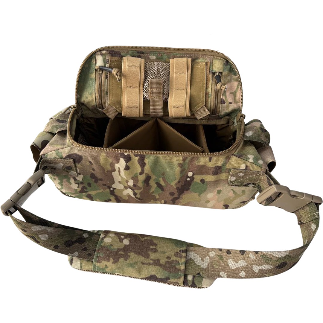 Сумка поясна медична, модель №30 — це продумане рішення для носіння індивідуального набору первинної допомоги (IFAK), розроблене для військових, тактичних медиків та рятувальників. Універсальна конструкція дозволяє використовувати сумку як повноцінну тактичну аптечку, так і як зручну сумку для щоденного застосування.