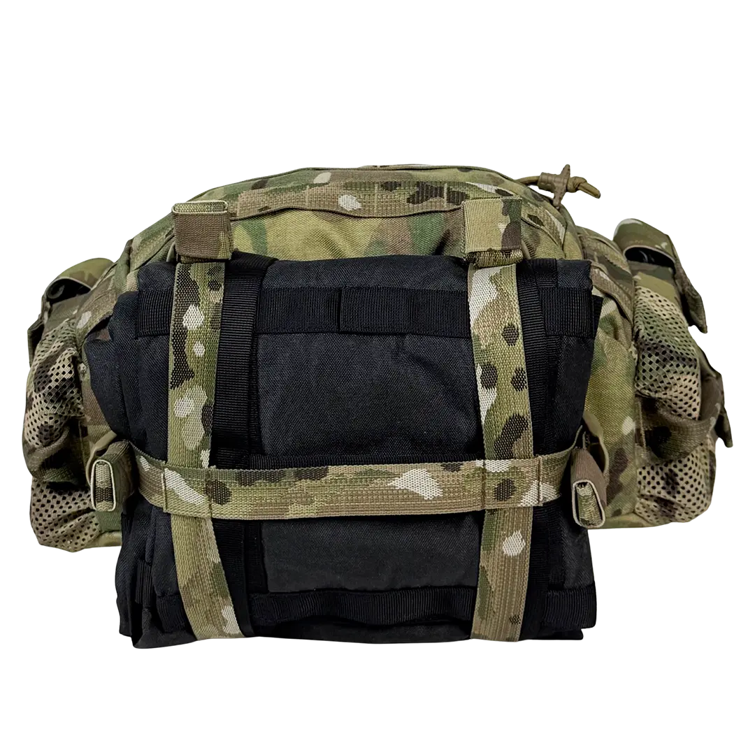 - Зовнішні бокові панелі оснащені сітчастими кишенями, відділеннями з клапанами для 4-х кровоспинних турнікетів та двома боковими ручками для переносу.
